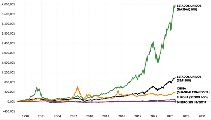 Mientras tu dinero en el banco pierde poder adquisitivo cada año por culpa de la inflación, los mercados financieros continúan creciendo con el tiempo.